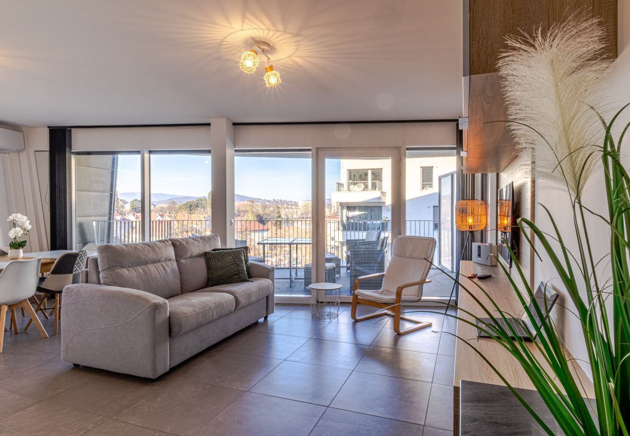 Head out to the expansive 33m2 terrace to enjoy the fresh air, whether sipping your morning coffee or admiring the sunset over the rooftops of Annecy with a glass of wine in hand. Our prime location allows you to easily explore the lakeshore and the charms of Old Town, with its quaint restaurants, local shops and cultural attractions.