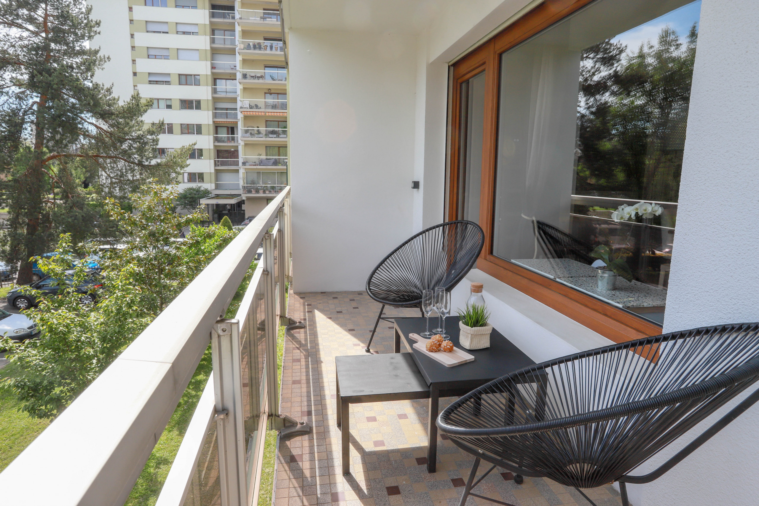 Un grand balcon de 17m², avec une vue imprenable sur les montagnes environnantes, où vous pourrez prendre votre petit-déjeuner ou admirer le coucher de soleil.