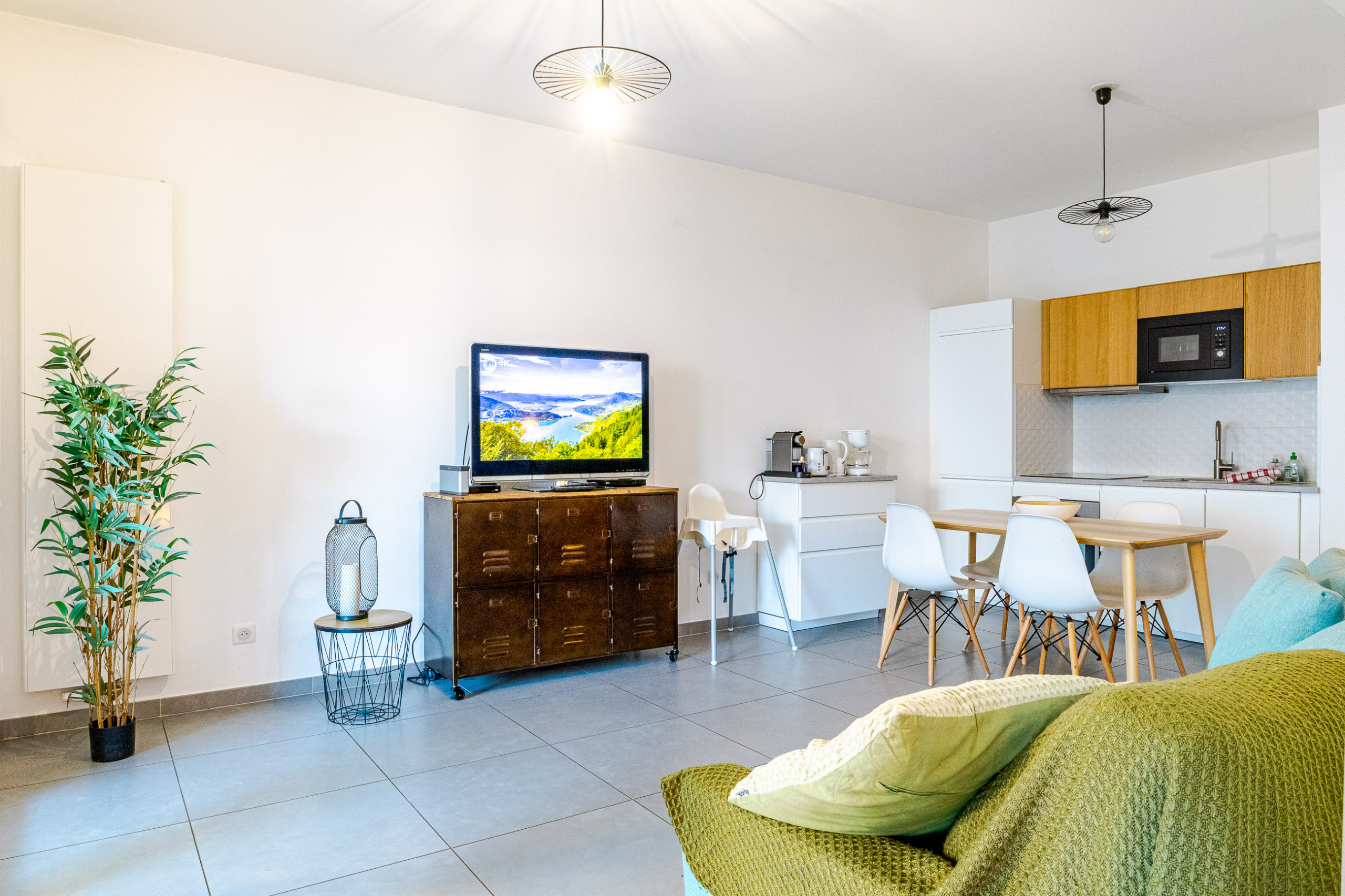 Notre appartement peut accueillir jusqu’à 4 personnes et est idéalement situé pour profiter des richesses d’Annecy. Vous pourrez vous baigner, faire du bateau, du paddle ou du vélo sur le lac, visiter le palais de l’Isle, le château d’Annecy, les jardins de l’Europe, flâner dans la vieille ville, déguster la gastronomie locale, faire du shopping, assister à des spectacles ou des festivals, etc. Vous pourrez également rejoindre facilement le Semnoz, une station de ski familiale, en bus ou en voiture.