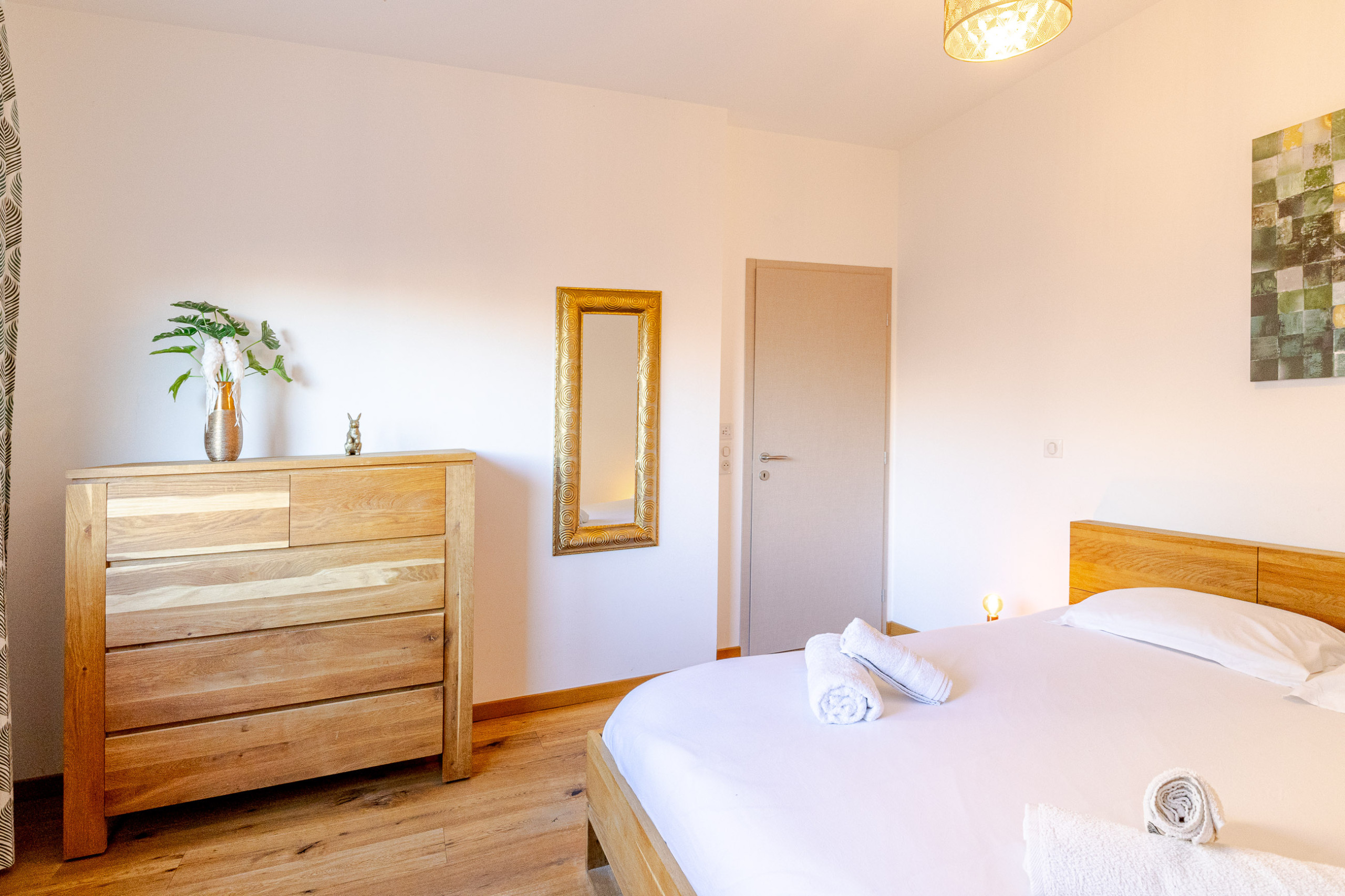 Dans l’espace nuit, vous profiterez d'un lit 160x200 avec un matelas et sommier Bultex. Un lit parapluie est mis à votre disposition pour les plus petits.